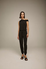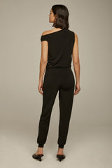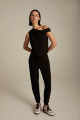This effortlessly chic jumpsuit features an off the shoulder silhouette and a drawstring waist making it a quintessential wardrobe staple. Complete this look: Wear with sneakers or flats for a chic daytime look, or wear with heels for a dressier look.