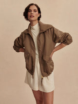 The Morven Blouson Jacket combines timeless style with contemporary functionality. Featuring a relaxed, blouson silhouette, this jacket is crafted from lightweight, breathable fabric. Details like a stand collar, elasticated cuffs, and a cinchable hem add a sporty, modern edge.