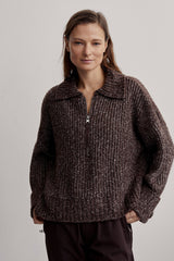 - Features half zip design, large rib collar, deep hem, and turn-up cuffs.