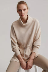 - With a rolled, high neck, drawcord and toggle waist cinch