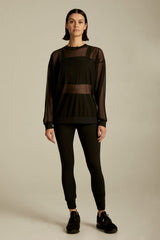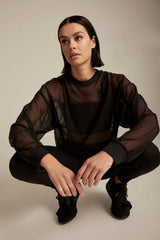 Cut from lightweight breathable micro-mesh, this sweatshirt features drop shoulders and a relaxed silhouette. This sweatshirt is a perfect workout coverup or can be easily styled into your daily wardrobe.