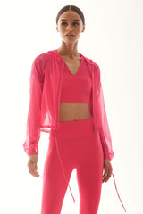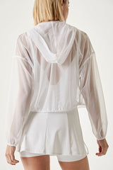 Breathable and lightweight mesh zip up jacket designed to layer over your pre and post workout look. Customize the fit with the tie waistband.