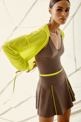 - Mesh hoodie with tie waist and contrasting black zipper