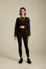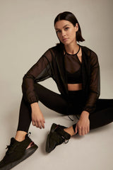 Breathable and lightweight mesh zip up jacket designed to layer over your pre and post workout look. Customize the fit with the tie waistband.