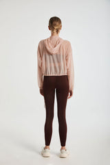 - Zip closure mesh hoodie with tie waist