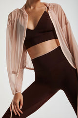 Breathable and lightweight mesh zip up jacket designed to layer over your pre and post workout look. Customize the fit with the tie waistband.