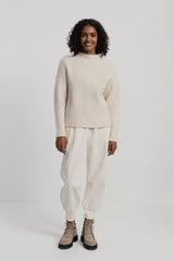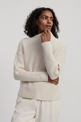- With its dropped shoulder, grown-on funnel neck, and chunky rib hem and cuffs, this knit offers a simple yet stylish silhouette that is ideal for easy layering.
